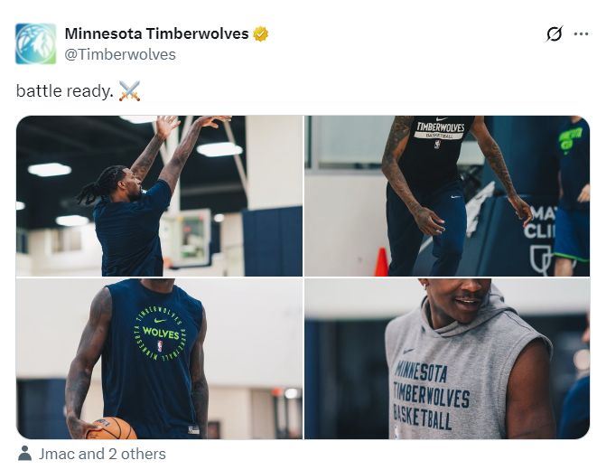 森林狼官方已经在预热了这场G1大战,面对科尔的死亡五小先发森林狼有着巨大的尺寸优势,兰德尔2.06米、麦丹2.06米、戈贝尔2.16米,替补席还有一个2.06米的里德,这四人将成勇士的梦魇。