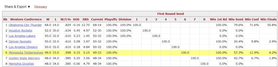 森林狼与勇士次轮的晋级概率也已经出炉,森林狼有57.3%的晋级概率,勇士只有42.7%。