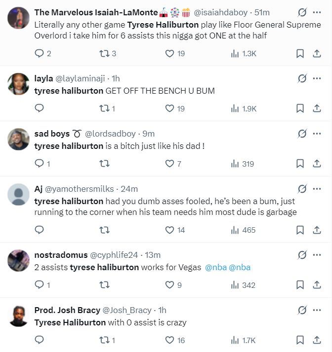 很多步行者球迷纷纷开始炮轰哈利伯顿,甚至有人直接爆粗口认为哈利伯顿在打假球,喷他是一个蠢货、流浪汉。