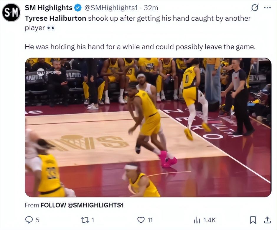 但哈利伯顿并没有因为手腕伤势退场,他还是常规轮换,上半场打了17分钟,拿到8分4篮板1助攻0失误,手腕受伤后他还命中了一个三分球。