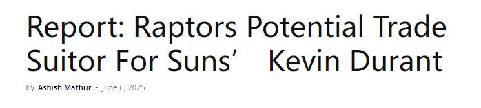 Fischer写道:“许多NBA圈内人士认为多伦多猛龙是杜兰特的潜在追求者……尤其是如果字母哥不会进入交易市场的情况下。”